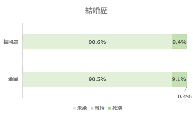 こうした人口構成の特徴は婚活市場にも反映されており、当社が運営する福岡店でも、女性の会員様が多く在籍する傾向が見られます。
