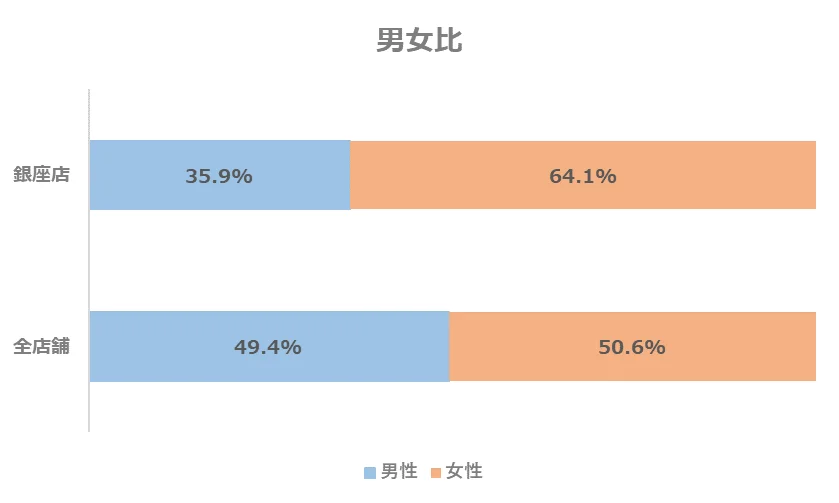 銀座店については、全店舗に比べて女性会員が多い傾向があります。