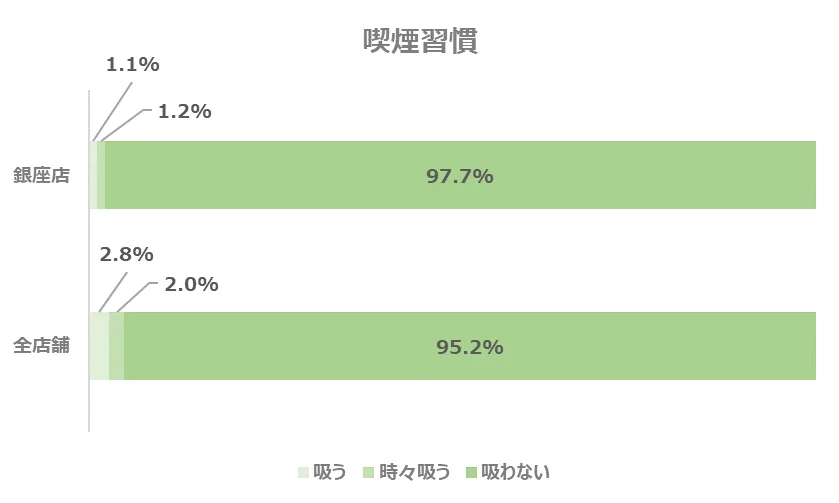 さらに銀座店においては喫煙率が2.3%と、非常に低い結果となりました。