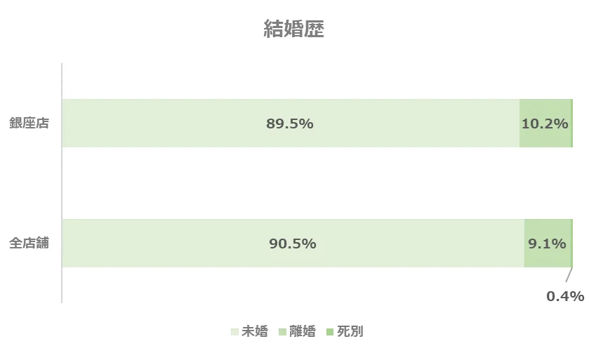 未婚の方の割合は全店舗とほぼ変わりません。