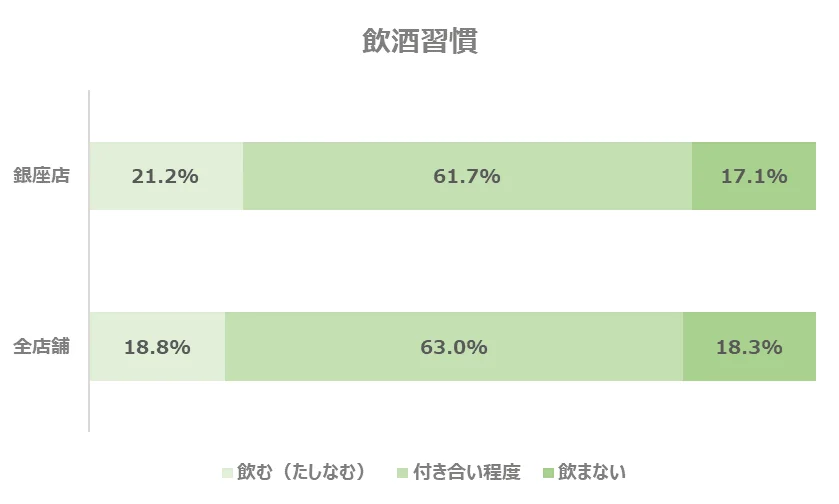 飲酒習慣に関しては全店舗と比較し、ほぼ変わらない結果となりました。