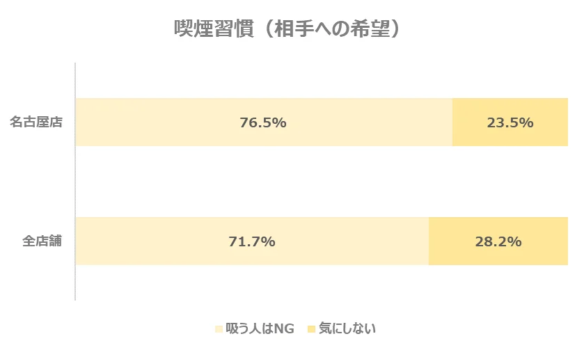 ・お相手に求める喫煙の習慣「吸う人はNG」割合、全店舗よりやや高め