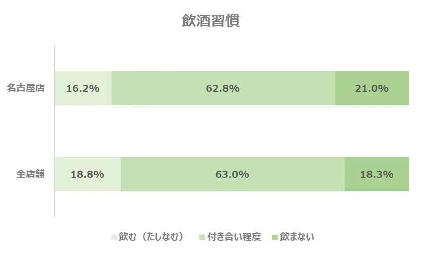 全店舗と比較すると、飲酒の習慣のある方がやや少ない結果となりました。