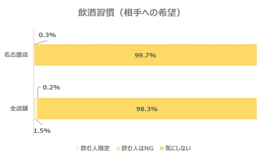 お相手に求める飲酒の習慣についてのデータを見てみると、全店舗とほぼ同様の結果となりました。