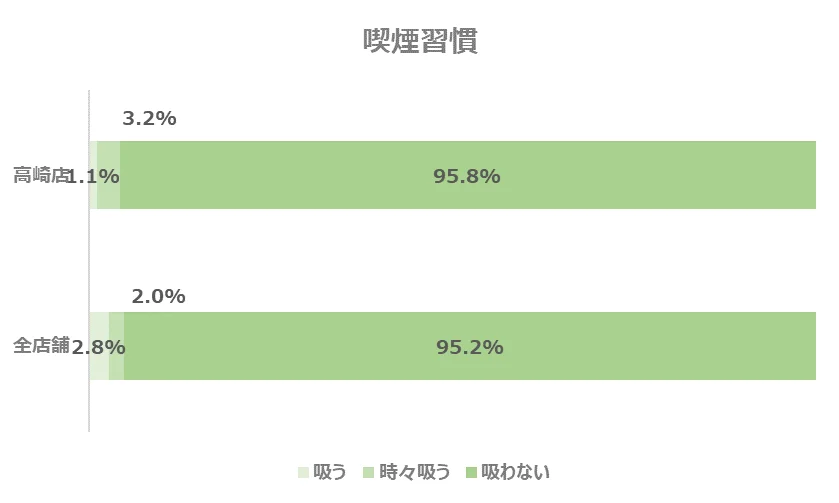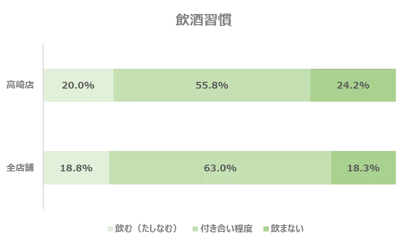 また、「飲む人限定」と答えた人は全店舗平均で1.5%いるのに対し、高崎店では0%という結果となりました。