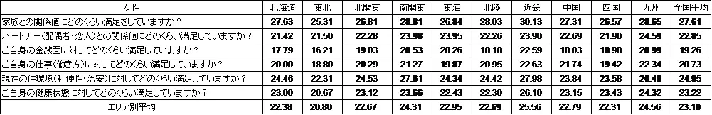 ■女性の幸福度が再び男性を上回る。女性が最も幸福なエリアは近畿