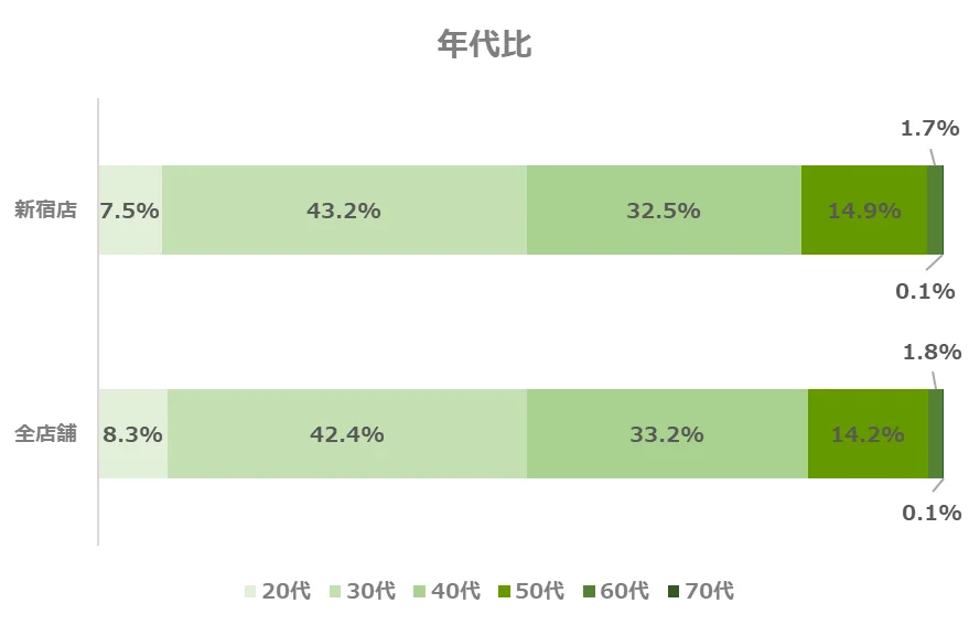 どの年代も全店舗とほぼ同じ割合になっています。