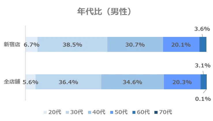 ・男性20~30代の割合が全店舗に比べ、やや高め