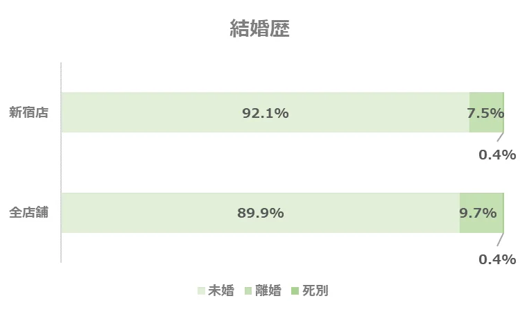 未婚の方が多いものの、全店舗と比べほぼ同じ結果となりました。
