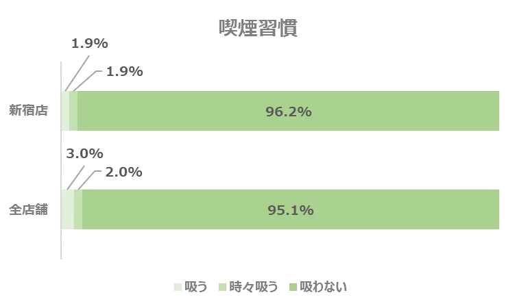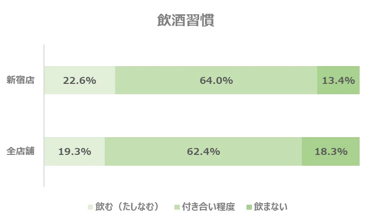 全店舗と比較すると、飲酒の習慣のある方がやや多い結果となりました。