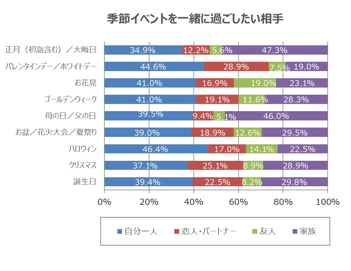 お正月やバレンタインデーなどの季節イベントについて、皆さんは誰と一緒に過ごしたいとお考えでしょうか。