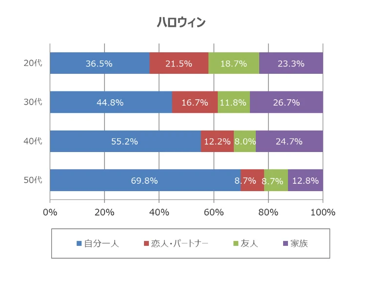果たして、20代には「イベントキャンセル界隈」の兆候があるのか、それとも逆に、20代には季節イベントを楽しむ人が多いのか。この調査結果を、年代別に集計してみました。